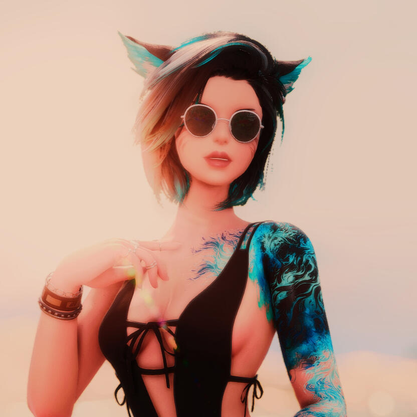 Sexual orientation: StraightHanon, who is decendent from the Lynx tribe, sports a much broader pair of ears than most miqo and a rather fluffy tail, which she inherited from her mother. Like the majority of the kin she has marks on her cheeks, signifying her descendants from the Seeker of the Sun clans. Having found someone in Tuliyollal that could removed her pervious tattoos, intricate designs that spanned most of her body in a symetrical style, she now sports colorful tattoos that have a less eastern feel to them, tribal in nature. The intricate designs adorn her back in swirls of blue and black. She was born with bicolored eyes of an unnatural hue and to this day it is largely unknown as to why her appearance differs so much from her kin. Hanon is often seen in leggings and a button up long sleeved top, though she tries out different styles through the help of her closest friend, who happens to be a seamstress.Hanon recently cut her hair short into a choppy bob after returning from Tuliyollal. There is no one particular reason for this other than she prefers her hair to not be in her face. She is also significantly taller than most miqo.In an incident when she was training to fight in the Doman War, she suffered a cut to her face, just below her eyes and across the bridge of her nose. The cut left a deep scar.